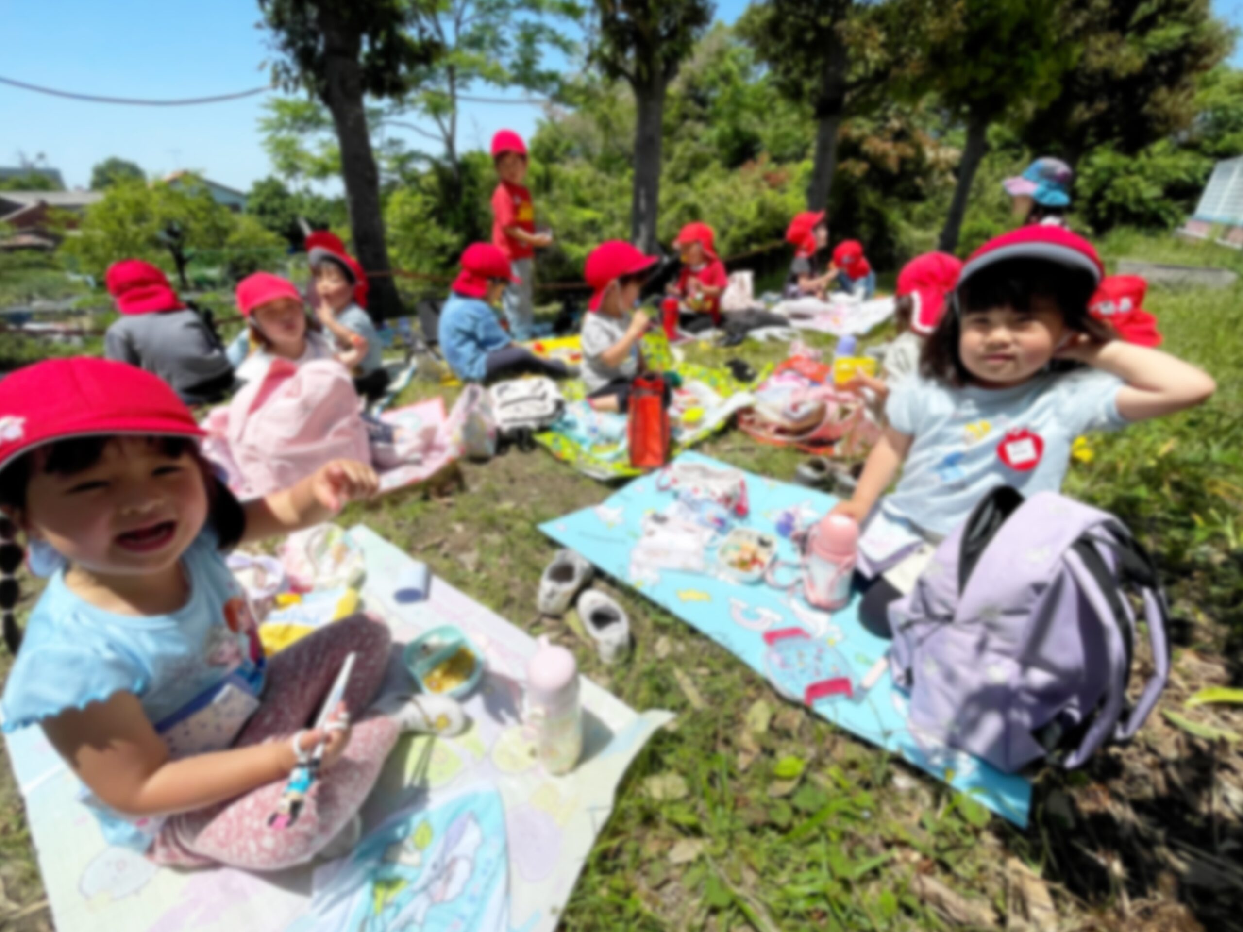 年少さくら組は園周辺の大山川まで出かけ、園の畑でお弁当を食べました!