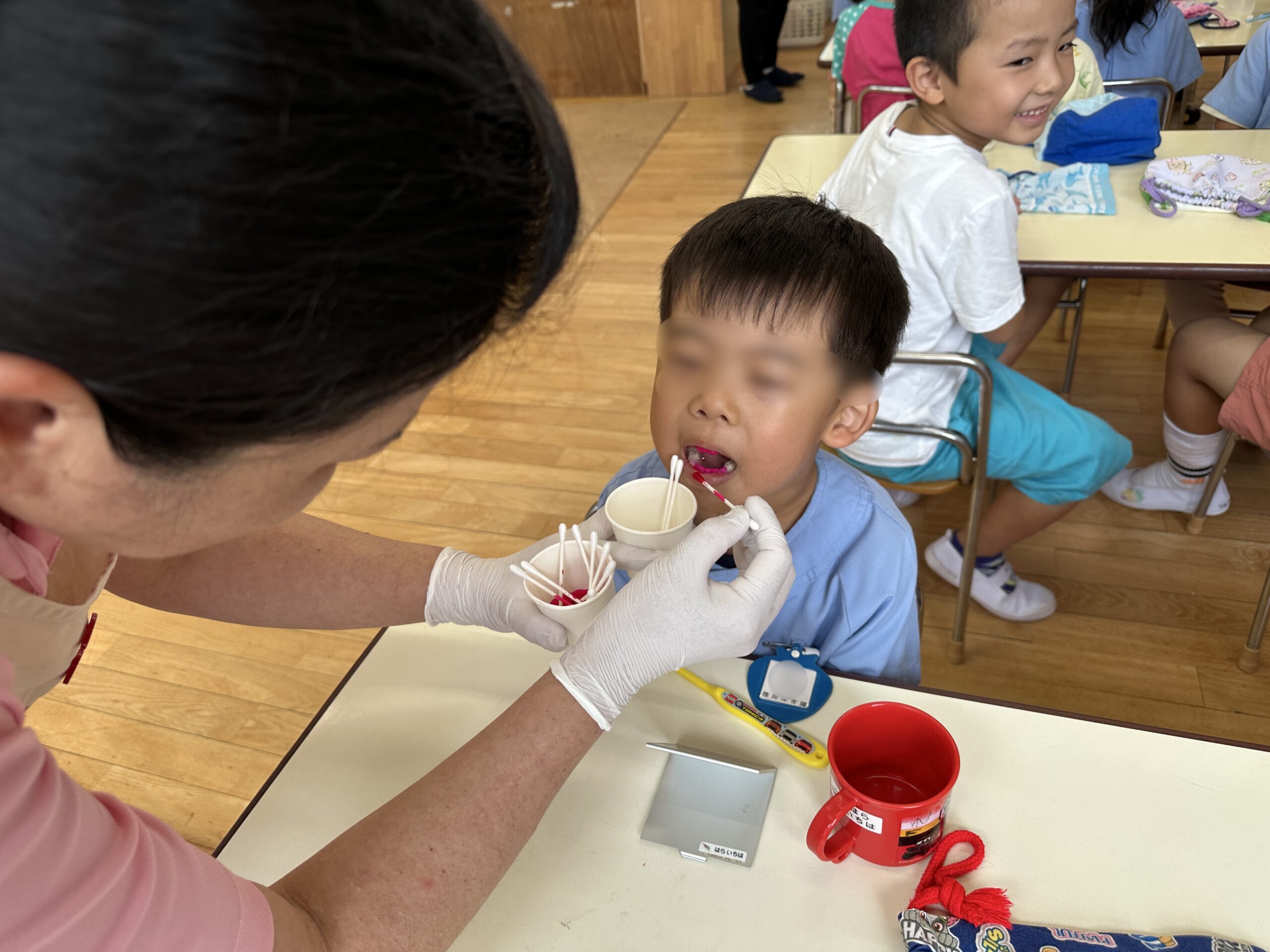 年長児は染め出しをしたり、6歳臼歯の磨き方も教えてもらいました!