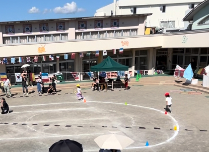 年少組は初めての運動会でちょっぴり緊張した子もいましたが、お家の方に見に来ていただいてとても嬉しかったようです!