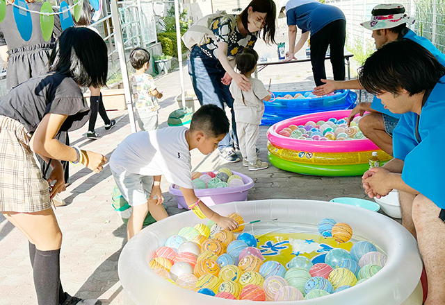 地域に根ざした保育園として、地域の方を招いての夏まつり、卒園児交流会、地域の乳幼児さんを対象とした「ももの会」などを行っています。積極的な交流により地域の方にも見守って頂ける保育圏を目指しています。