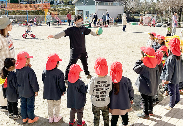 体育の専門講師による指導。幼児クラスの子どもたちが、様々な遊びを通して、遊びながら体幹を鍛えます。“楽しい”から「もっとやりたい」の気持ちを育てます。